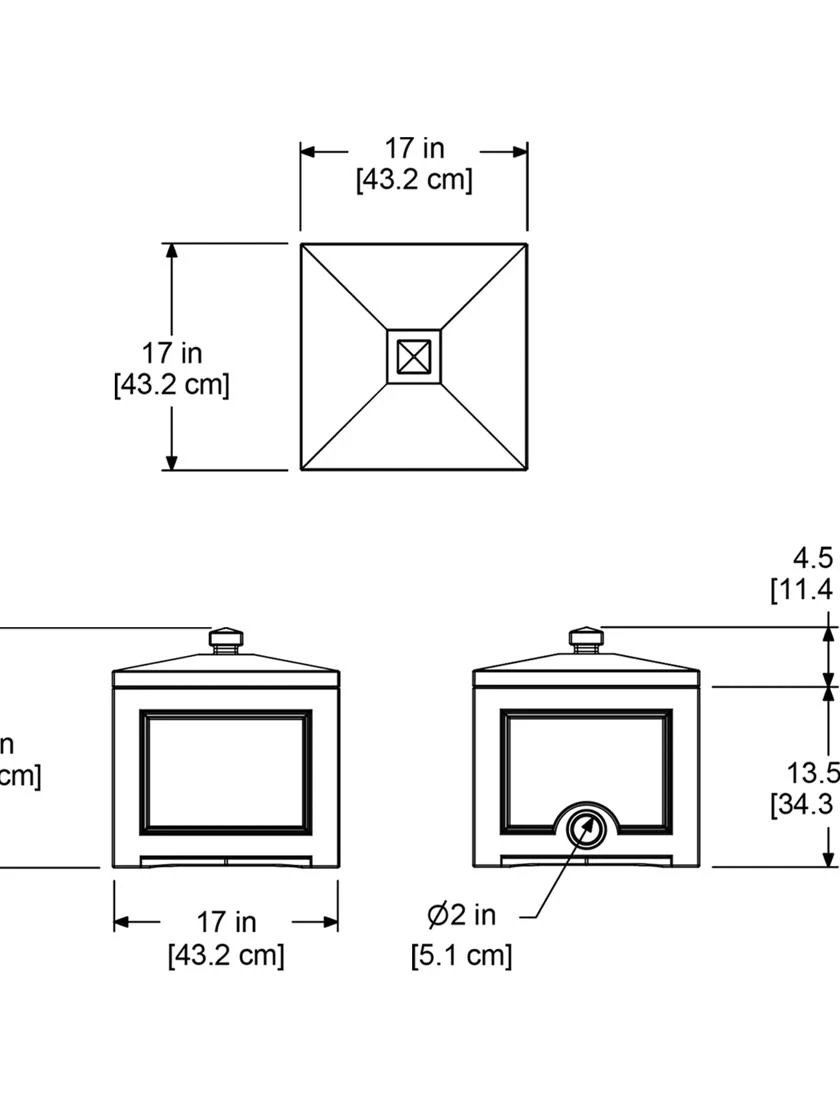 • 17″ square x 18″ H